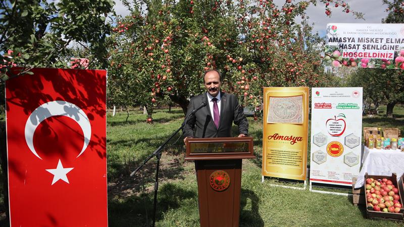 "İlimizde yapılan kazı çalışmaları sonucu elma ağacı figürlü mozaik bulunmuş olması çok uzun yıllardır bu topraklarda elma üretiminin yapıldığının bir kanıtı olmuştur. Bu anlamda elma ilimiz için tarımsal değerinden öte kültürel bir değer taşımaktadır. Adı ilimizle özdeşleşen ve kültürel değer taşıyan Amasya Misket Elması kendine has fiziksel özellikleri ve aroması ile diğer çeşitlerden ayrılmakta ve Amasya dışında yetiştirildiği diğer bölgelerde bu özellikleri göstermemektedir. Bu özelliklerini korumak, sahip çıkmak, tanıtmak ve dinamik bir pazarlama gücü katmak adına İl Müdürlüğümüz tarafından 2019 yılında coğrafi işaret tescili alınmış ve yürütülen projelerle üretime katkı sağlanmıştır. İlimiz 2020 yılında 3.957 dekar alanda 9.010 ton Amasya Misket Elması üretimi ile Türkiye üretiminin yüzde 3,8'ini üretmekte olup ülke genelinde 3. sırada yer almaktadır. Bu yıl ise toplam elma üretiminde 35.744 ton, Amasya Misket Elması üretiminde yüzde %36 artışla 12.231 ton rekolte tahmin etmekteyiz. Amasya elması üretimini arttırmak ve gen kaynaklarını korumak amacı ile son 4 yılda İl özel idaresi katkılarıyla yürütülen Amasya Misket Elması Gen Bahçesi ve Amasya Elması Üretiminin Arttırılması Projeleri ile toplam 400 da alanda Amasya Misket Elması bahçeci tesis edilmiştir. 2021 yılı içerisinde de 100 dekar alanda Amasya Misket Elması Bahçesi kurulumunu gerçekleştireceğiz. Böylece ilimiz sahip olacağı gen bahçeleri ile ülkemizin elma üretim merkezlerinden birisi olmaya, önemli tarımsal kaynaklarından olan elma yetiştiriciliği ise kırsal kalkınmanın sürdürülebilirliğine katkı sağlamaya devam edecektir.